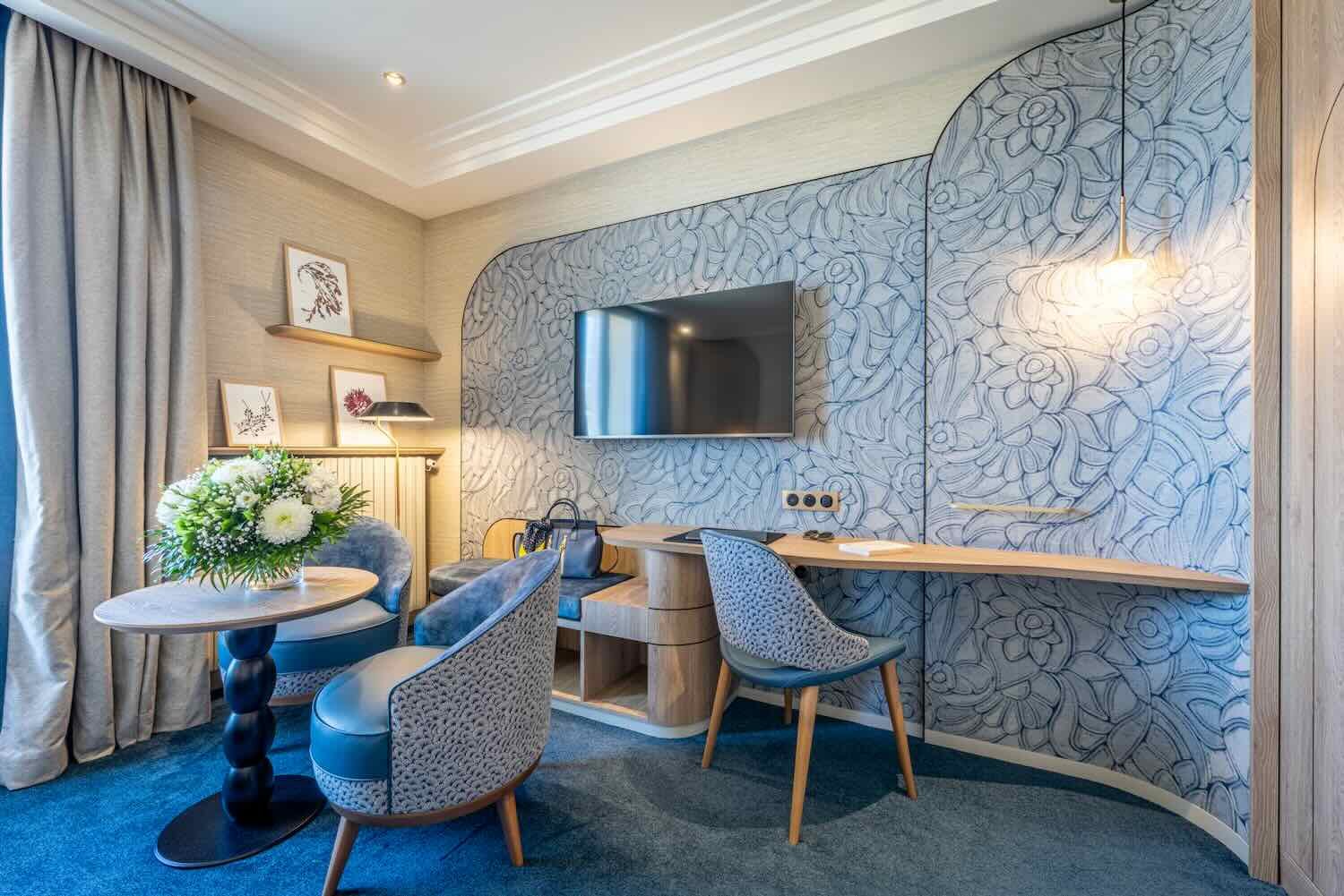Visite virtuelle Matterport Pro3. Pour la démo, nous avons choisi de vous présenter une Suite de l’hôtel Shangri. Ce qui peut être l’axe de présentation sur votre site internet, en présentant simplement les catégories de vos chambres…